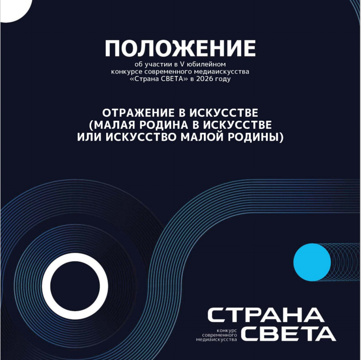 V Юбилейный конкурс современного медиаискусства «Страна СВЕТА» 2026. ОТРАЖЕНИЕ В ИСКУССТВЕ (МАЛАЯ РОДИНА В ИСКУССТВЕ ИЛИ ИСКУССТВО МАЛОЙ РОДИНЫ)